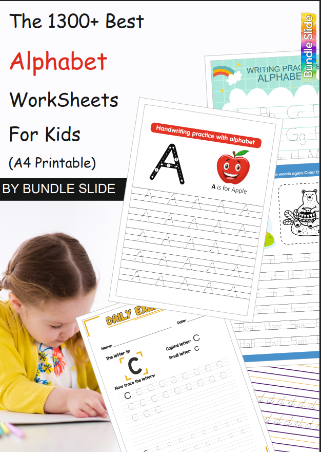1300+ Alphabet Worksheets for Kids is a complete English alphabet writing practice bundle designed to help children learn letters confidently through tracing, repetition, and visual association.